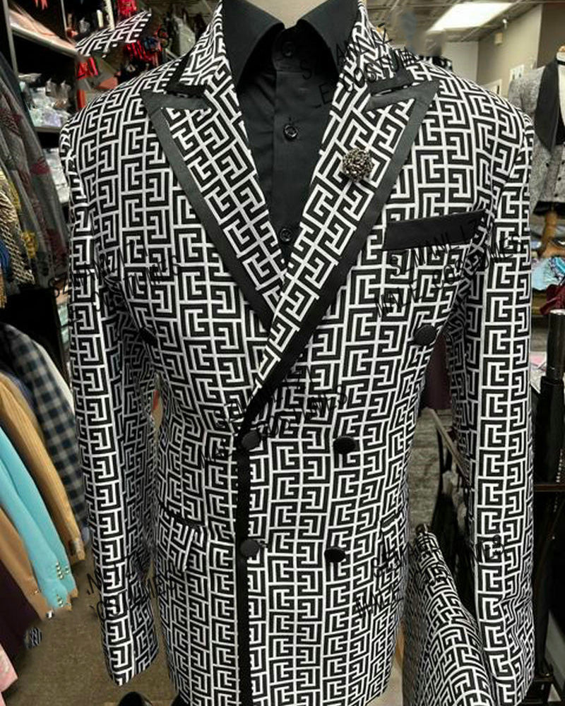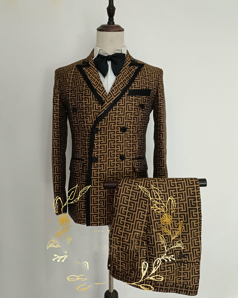 Fashion 2023 Monogram Jacquard Tuxedo Suits 2 Pieces costume for Men CB1013