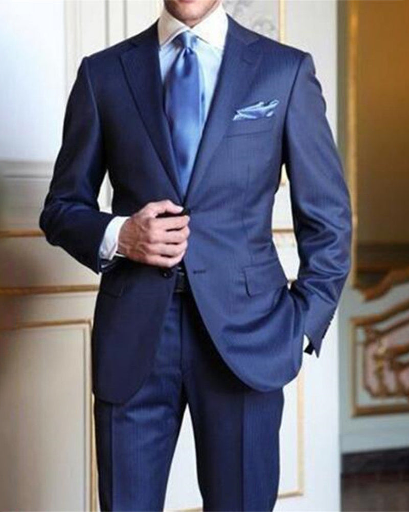 Navy Blue Wool Mens Suits Slim Fit 2 Piece Jacket Pants Set For Groom Wedding Formal Prom outfit Costume Homme