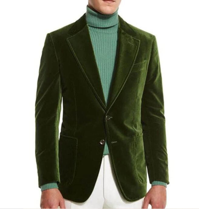 Olive Green Velvet Blazer suit for Men Wedding Guest Suits Jacket +Pants 2 Pieces CS1224