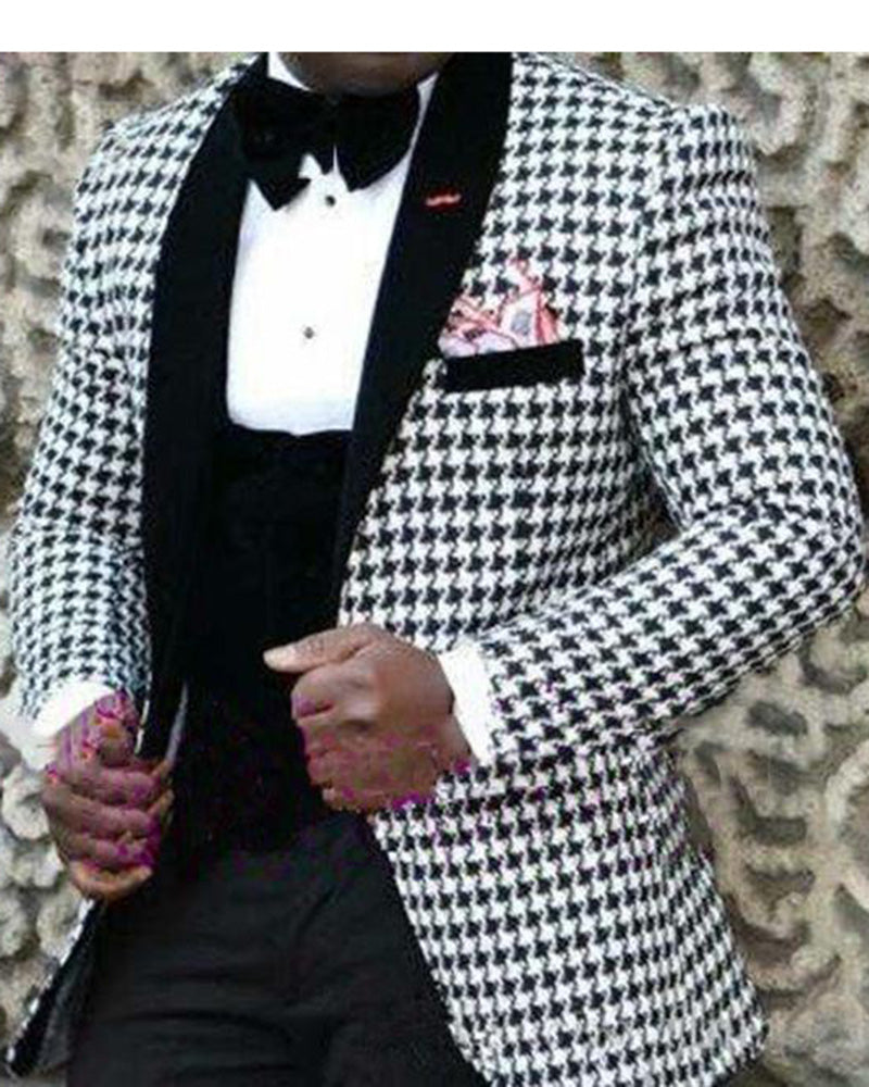 3 Pieces Party Tuxedo Tweed hounds tooth Weave Hounds Tooth Wedding Suit 2024 CB324