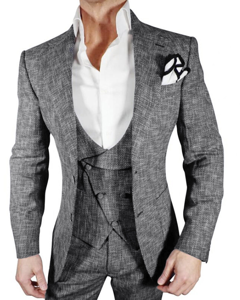 Dark Gray 3 Pieces Casual Sports Suit Tweed Jacket Suits for Men CB0521