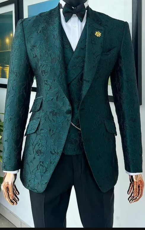 Green Jacqaurd Pattern Wedding Suits 3 Pieces CS5226