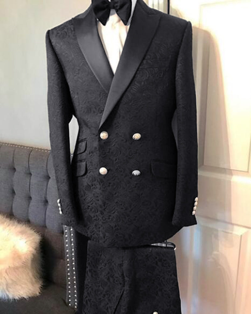 Black Double Jacquard Floral Wedding Breast BlazerDinner Jacket Suits for Man 2 Pieces CB07262