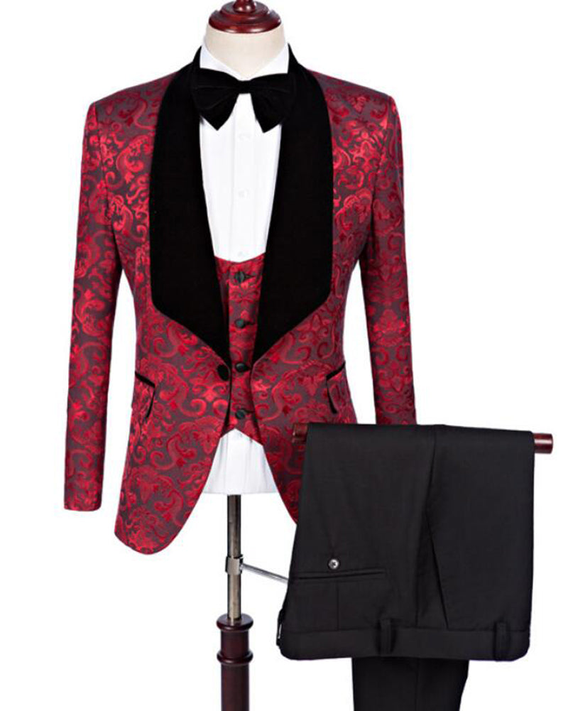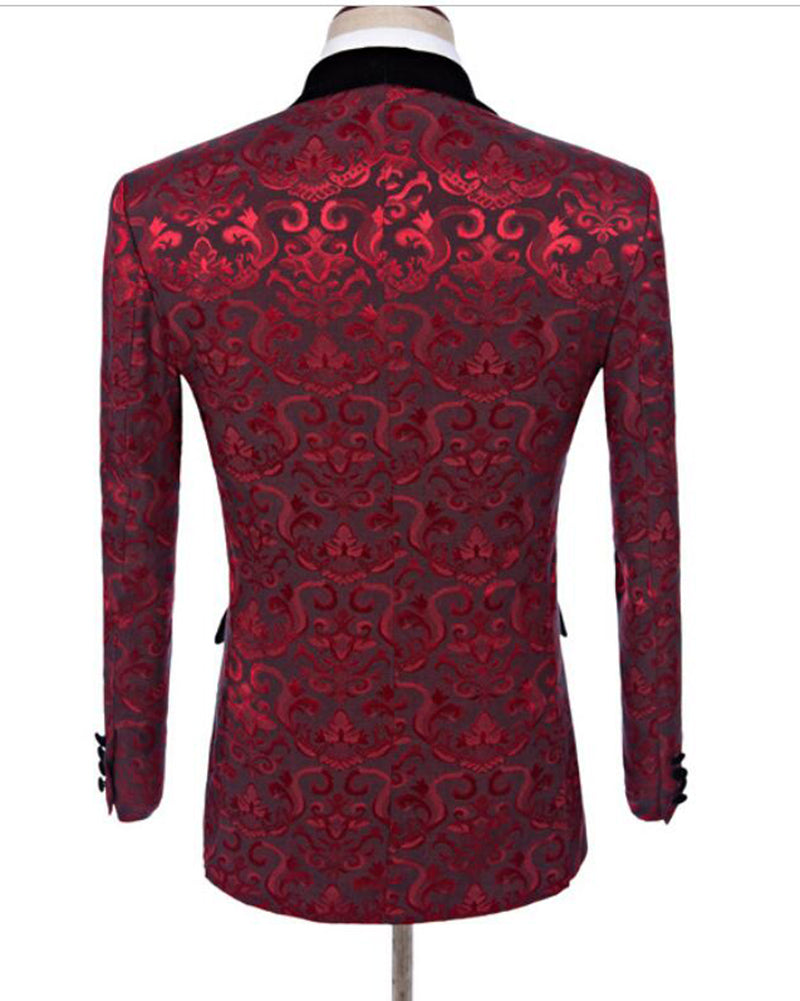 Burgundy Flower Slim Fit Pattern Suits Wedding Groomsmen,Prom Tuxedos Blazer 2022 CB520