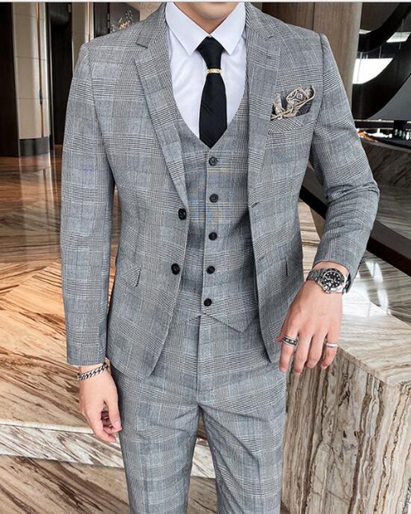 Classic Pattern Menswear Dogtooth Houndstooth Suit Checked 3 Pieces Suits (Jacket +Pants +vest)CB01125