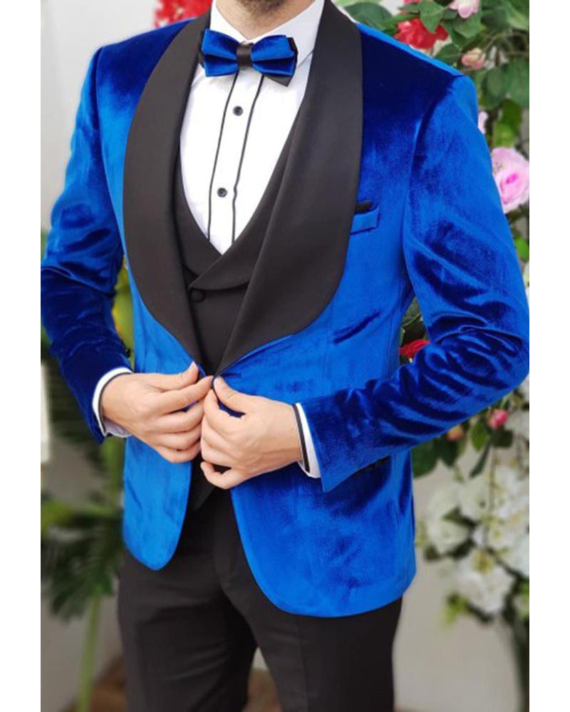 Classic Royal Blue Velvet Smoking Jackets for Men ,3 Pieces Tuxedo Suits traje de novio CB1019