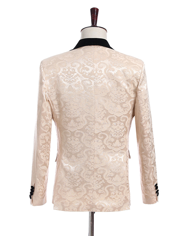 Classyby 3 Pieces Jacquard Beige/Champagne Groom Wedding Attire , Prom Suits men 2022 (jacket+pants+vest)