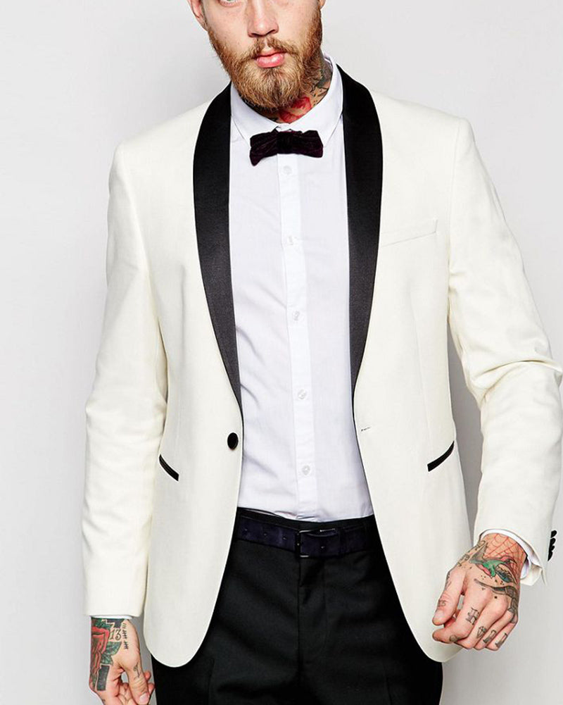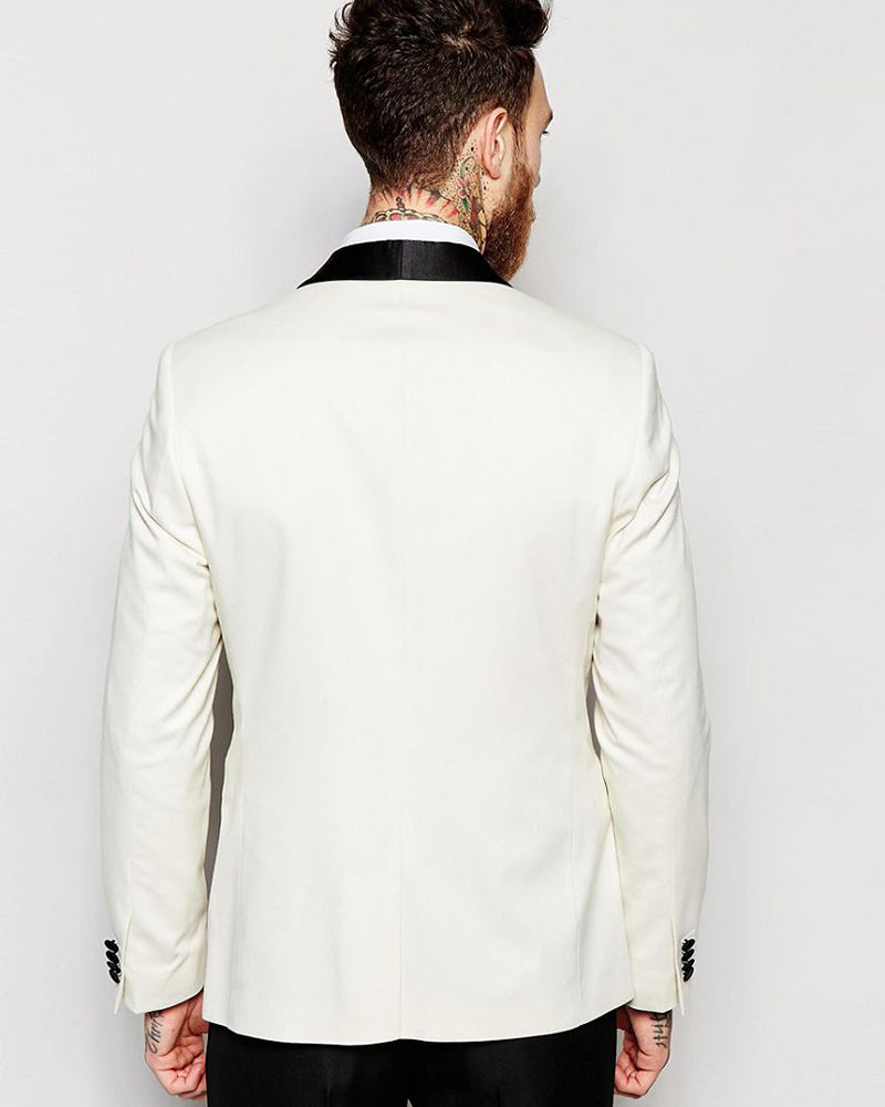 Ivory /Black Slim Fit Suit Groom Suit For Wedding 2 Pieces (Jacket + Pants)