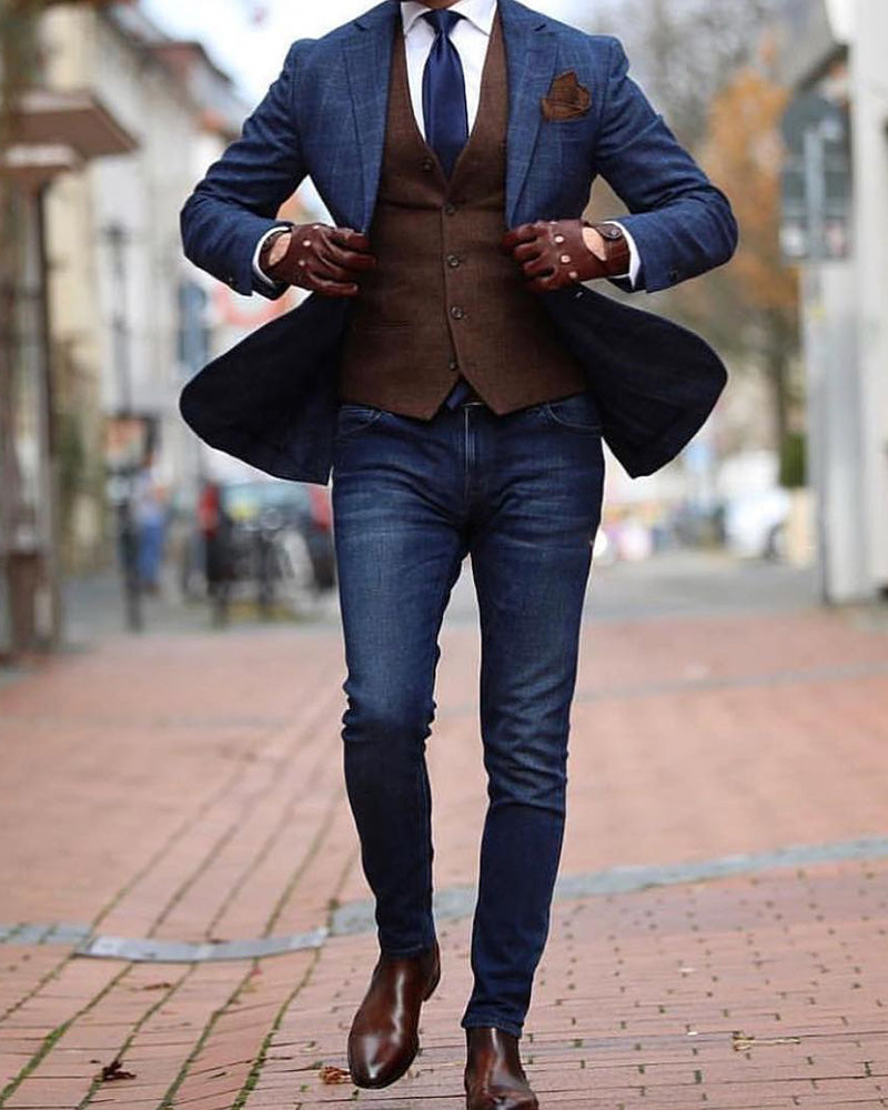 Navy Men Suit Plaid Wedding Formal Wear Suits & Blazer CB221