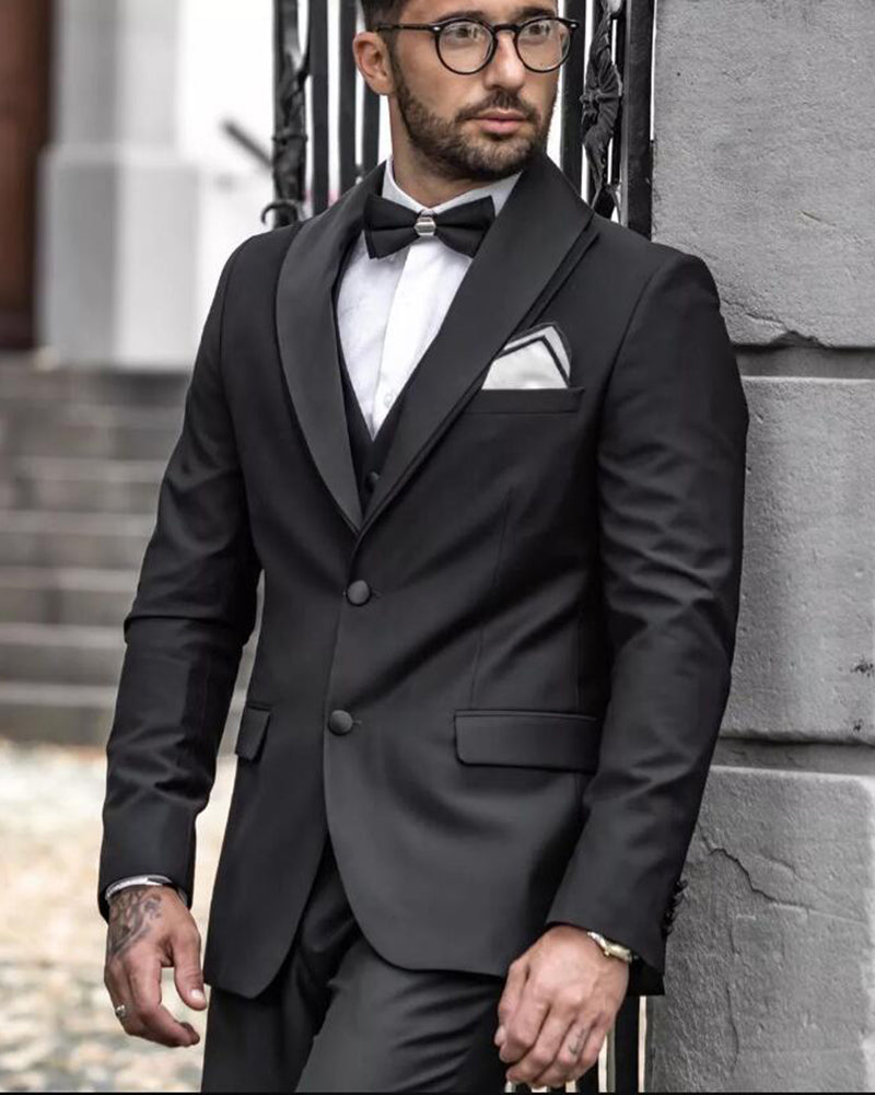 Slim Fit 3 Pieces Black Groom Tuxedos for Wedding (Jacket +vest +pants)CB01202