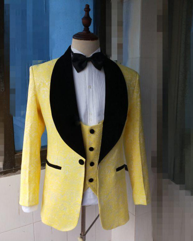 Slim Fit Lapel Shawl Yellow Prom Dress Suit For Men Formal Party Blazer outfit garnitur meski (jacket+pants+vest)