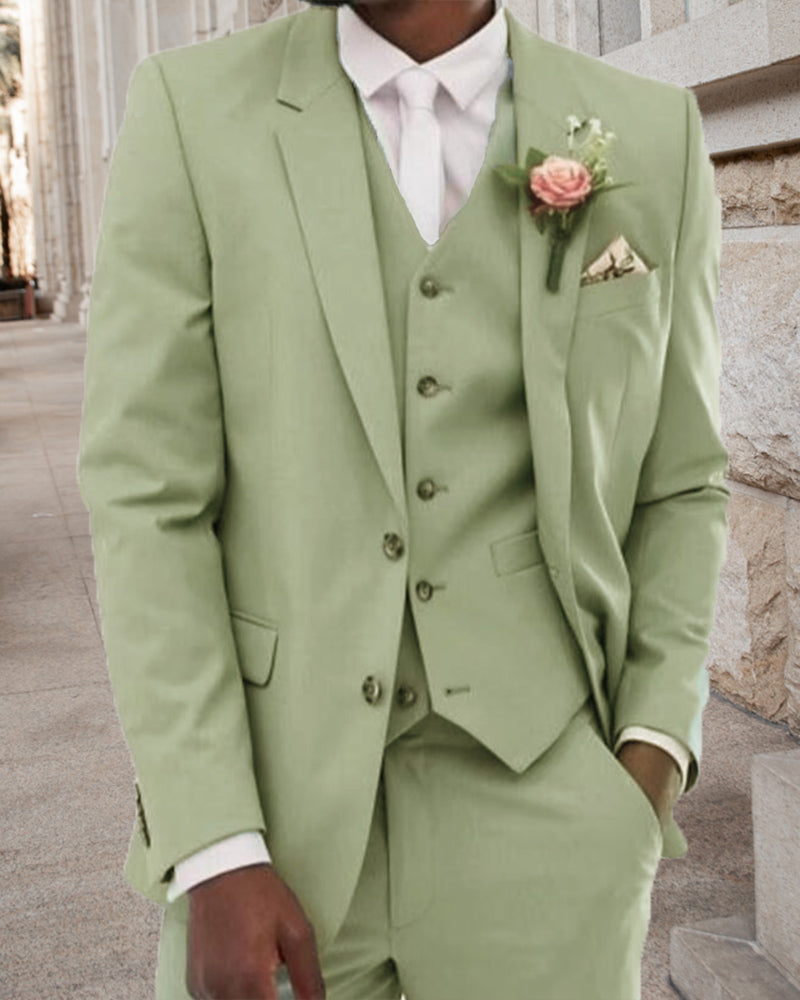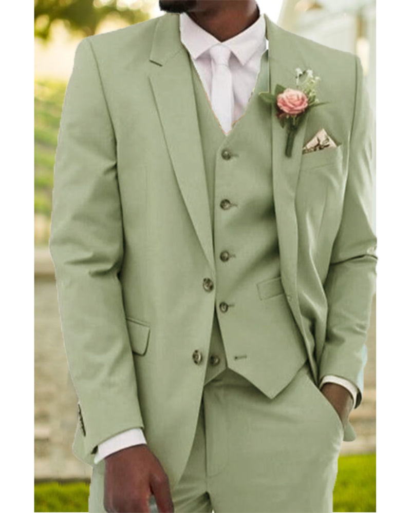 3 Pieces Spring Light Sage Green Groomsmen Suit for Wedding CB94348