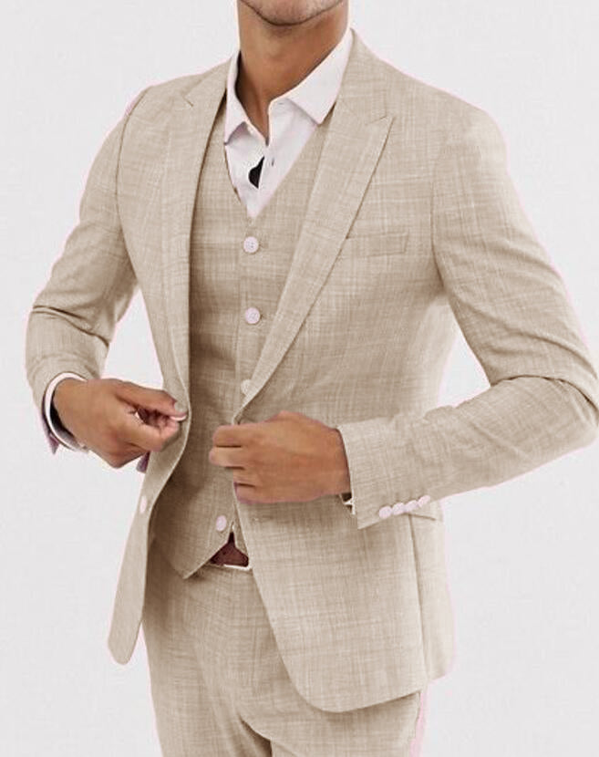 Amazing 3 Pieces Summer Beige Wedding Suits Groomsmen Suit CB34112