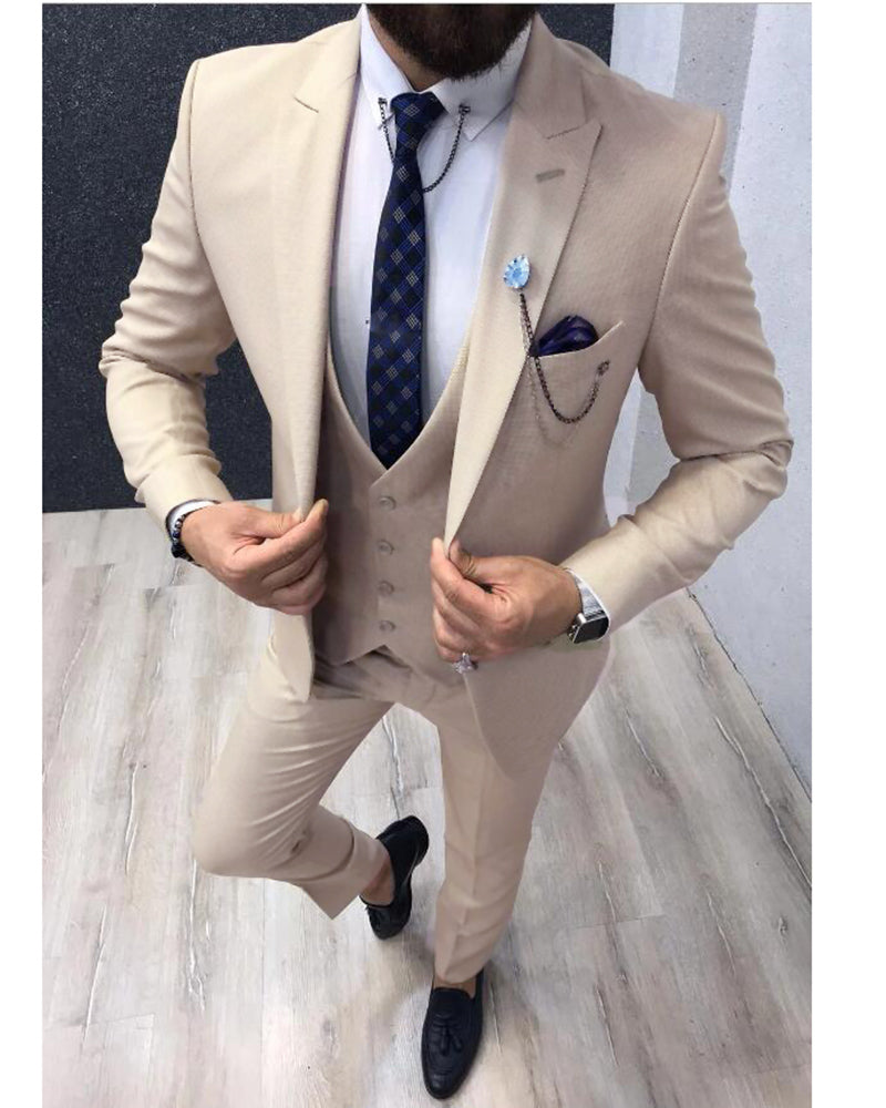 Beige Groomsmen Wedding Tuxedo 3 Pieces (Jacket+pants +waistoat)