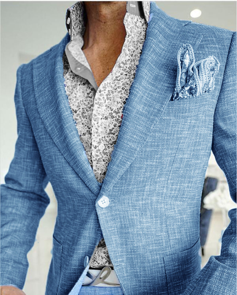 Blue Lino Tweed Blue Blazer Suits 2 Pieces Summer Casual Suits for Men (Jacket+Pants) CB0824