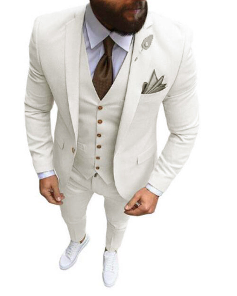 CB0508 Slim Fit Ivory Men Groomsmen/Groom Wedding Tuxedo 3 Pieces Dress Suits for men Outfit 2022(Jacket+vest+pants))