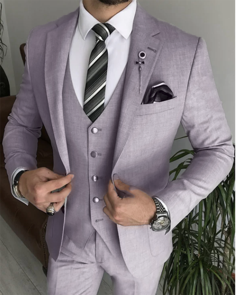 CB1015 Classyby Dusty Lilac Suits for Men 3 Pieces Wedding Men Suits ,Prom Suits Jacket +Pants+Vest