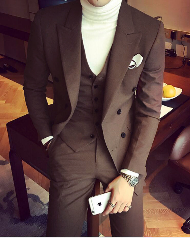 CB1231 Dark Camel Peak Lapel Formal Dress Suit Tuxedos For Men Prom Wear 3 Pieces 2022