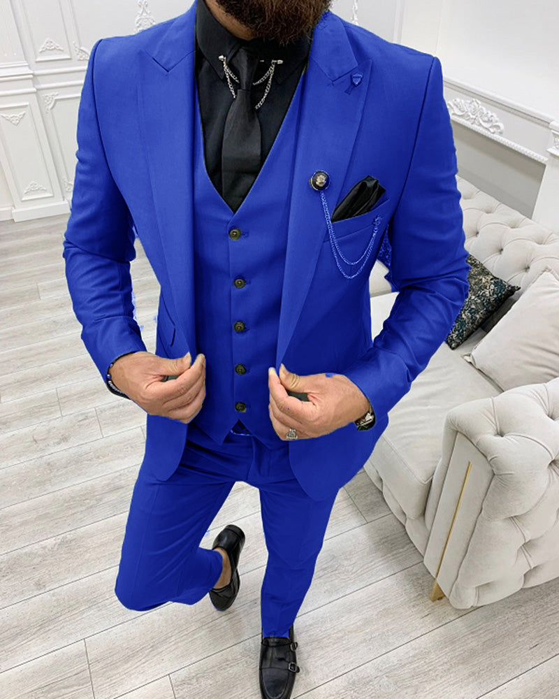 Classyby Peak Lapel Three Pieces Royal Blue Wedding Suits for Men CB11129
