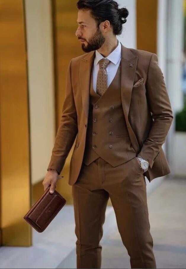 Classyby Tailor-made Brown Prom Suit for Men 3 Pieces CS49253