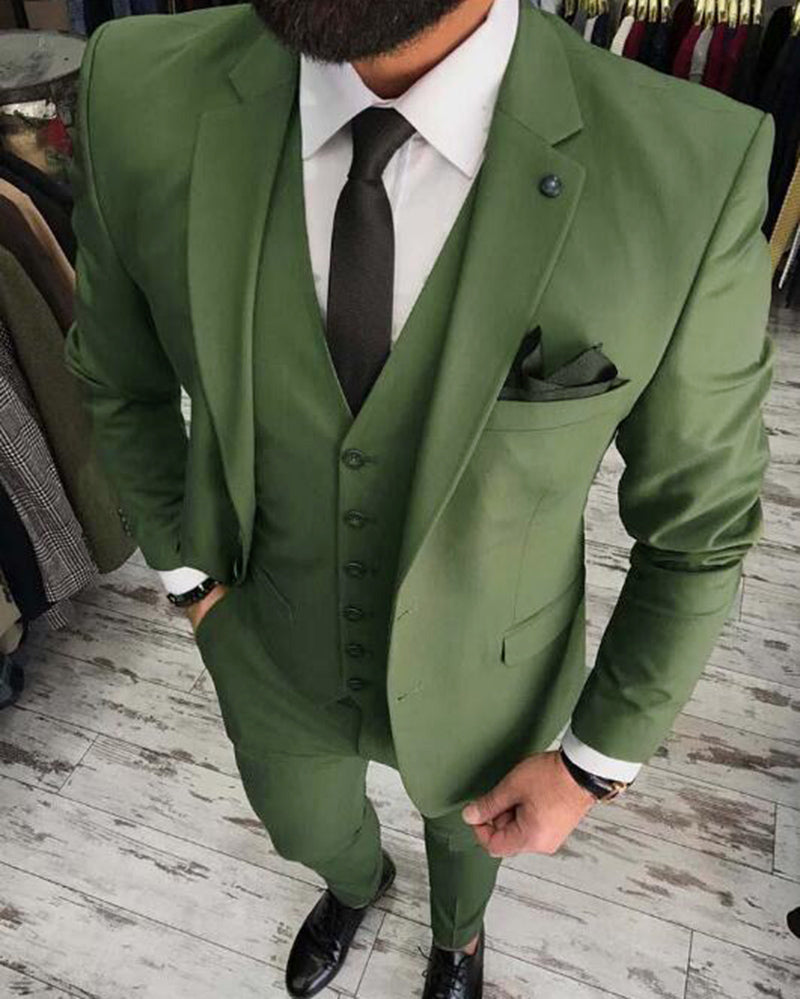 Dark Army Green Formal Dress Wedding Suits for Men 3 Pieces Prom Suits Brazer (Jacket+vest+pants) CB0801