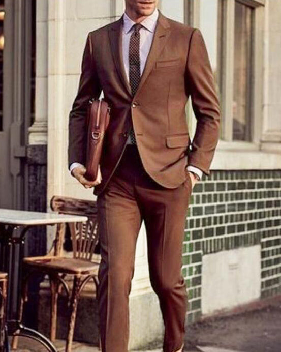 Dark Brown Costume Homme Men's Suits 2 Pieces(Jacket+Pant) Terno Masculino Groom Blazer CB2018