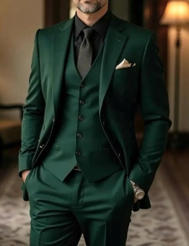 Dark Green Groomsmen Suits , Green Men Prom Suits Three Pieces Suits CS721