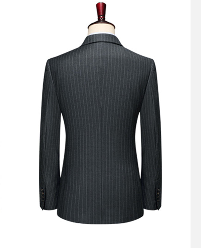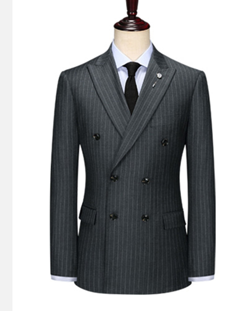 Double Breast Black Men peak Lapel Grey Stripe Men Suits Tuxedos 2 Pieces