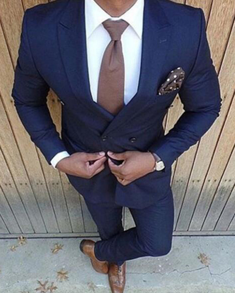 Double Breast Navy Blue Prom Evening Dress Suits for Men , Dinner Party Suit 2 Pieces CB07192