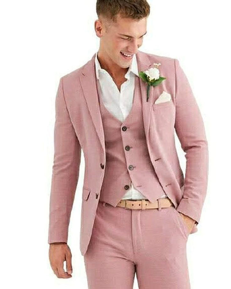 Dusty Rose Pink Suits for Men,Summer Spring Wedding Suits ,3 pieces Prom Suits CB2278
