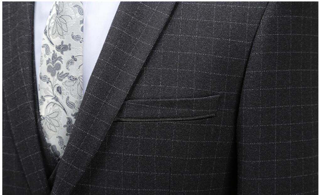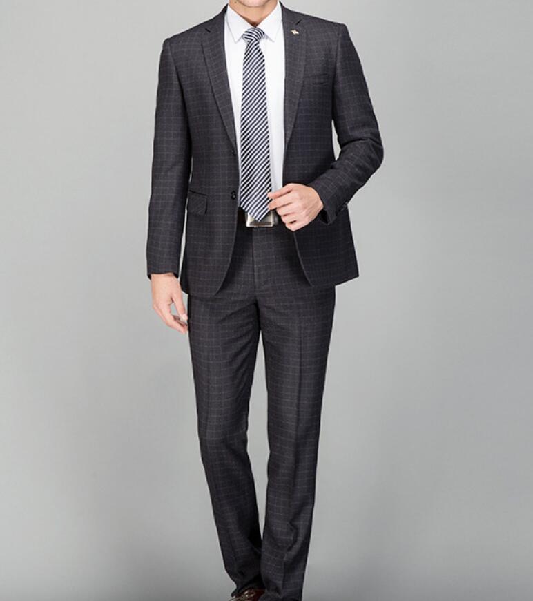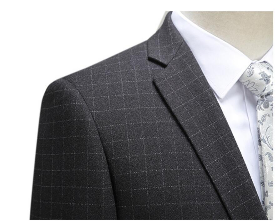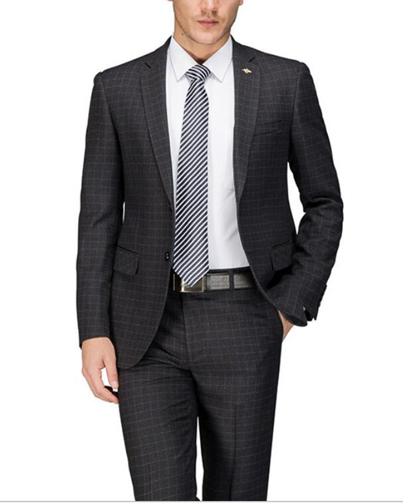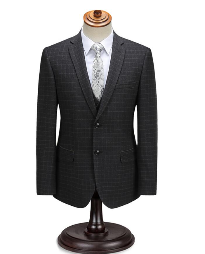 High Quality Black Plaid Wool Men Business Suits 2 Pieces (jacket+pants)