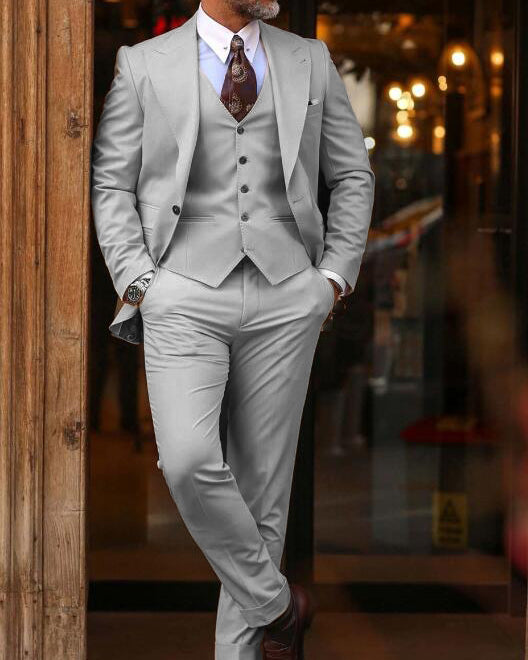 Latest Design Cream Wedding Suit For Men 3 Pieces Peak Lapel Groom Wear Costum Homme CB46606