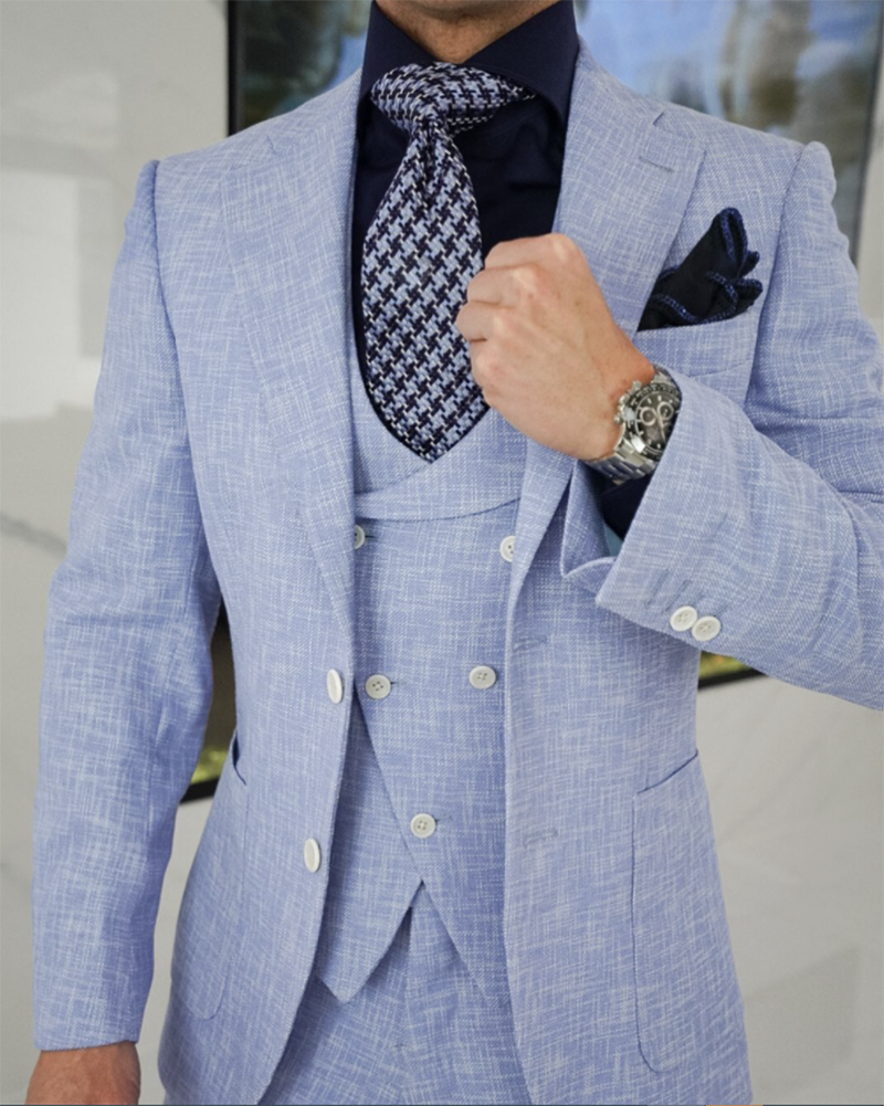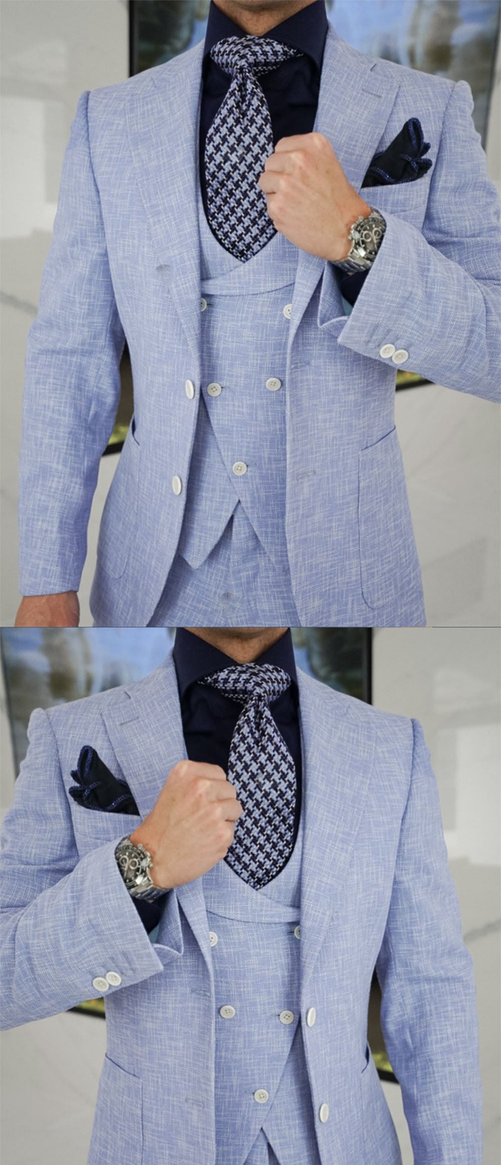 Latest Lilac Light Blue Lino 3 Pieces Summer Wedding Dress Suits for Men Tuxedo CB10716