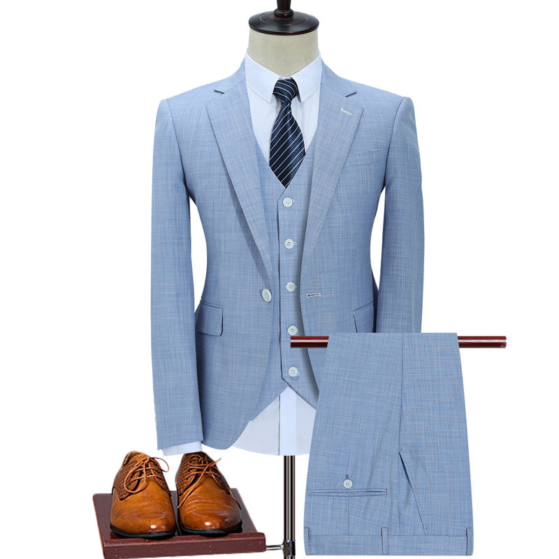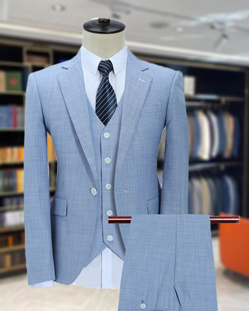 Light Sky Blue 3 Pieces Men's Linen Suits for Wedding CB3627