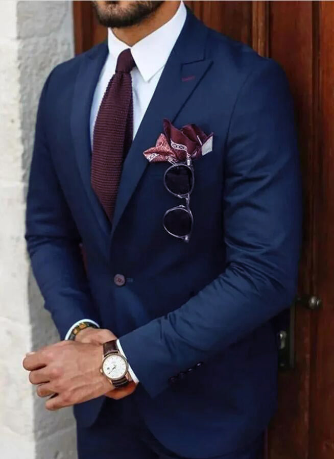 Men's Wedding Groomsmen Suits Navy Blue Plus Size Bridegroom Wear 2 Pieces CS486
