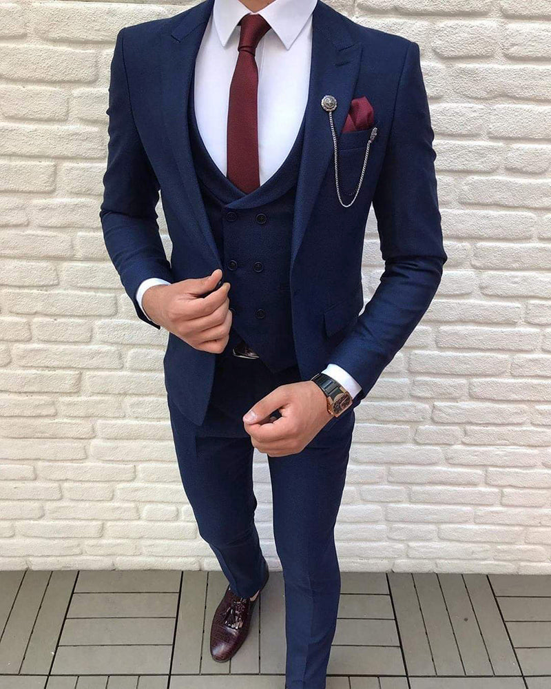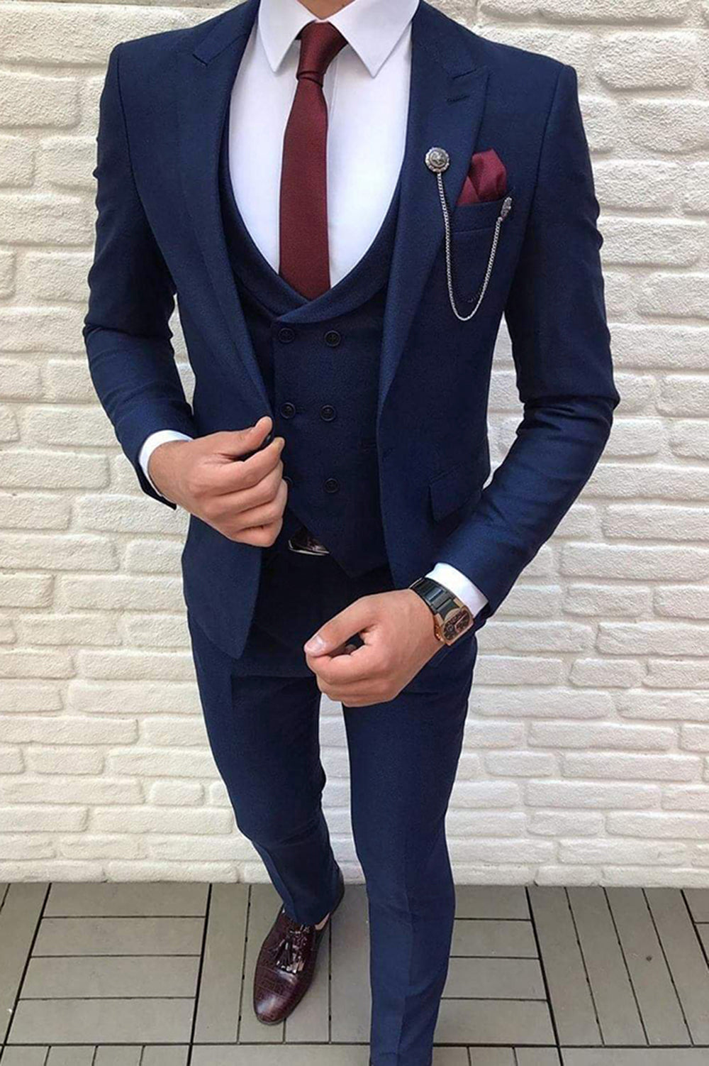 Navy Blue 3 Pieces Engagement suit for men Three Pieces Suits CB110151
