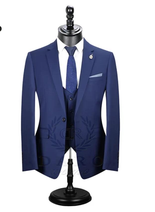 Navy Blue Groomsmen Wedding Suits for Men Jacket +Vest+Pants CS7281