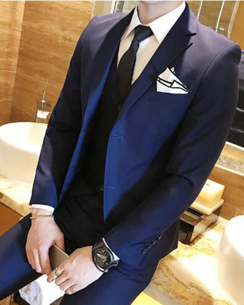 Navy Blue Three Piece Prom Suit For Young Men party Cocktail Outfits CB33281
