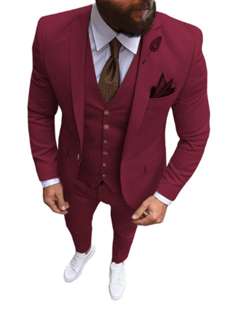 North Lapel Slim Fit 3 Pieces Burgundy Prom Suits 2022 Party Suit for men CB1027(jacket +waistcoat +pants)