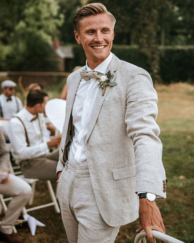 Pale Gray bark Beige 2 Piece Men Slim Fit Business Linen Summer Suits 2023 Summer Groom Wedding Tailor Made Casual Men Suit CB2359