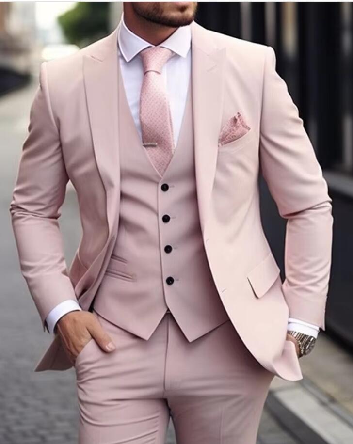Pale Pink/Sky Blue/Tan Men's Formal Dress Suits for Prom,Wedding,engagemen,Party 3 Pieces CS12043