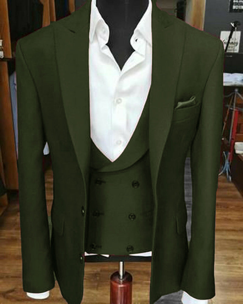 Peak Lapel Dark Army Green Wedding Groomsmen Suits Prom 3 Pieces (jacket+pants+vest) CB0808