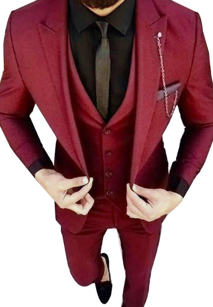 Slim Fit 3 Pieces Groom & groomsmen Suits Burgundy Tailored outfits for Men CS725