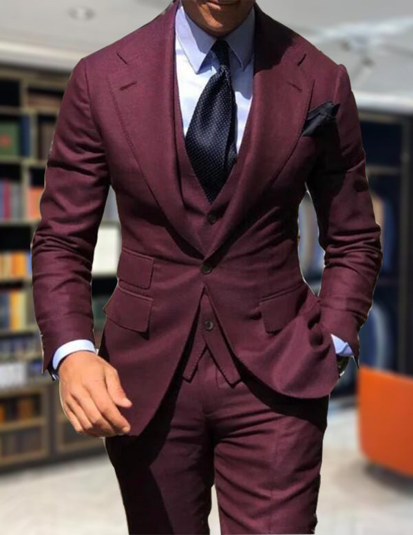 Slim Fit Burgundy Wine Prom Dress Men Suits Cocktail Party Tie Suit Outfits for Men 3 Pieces CB2313