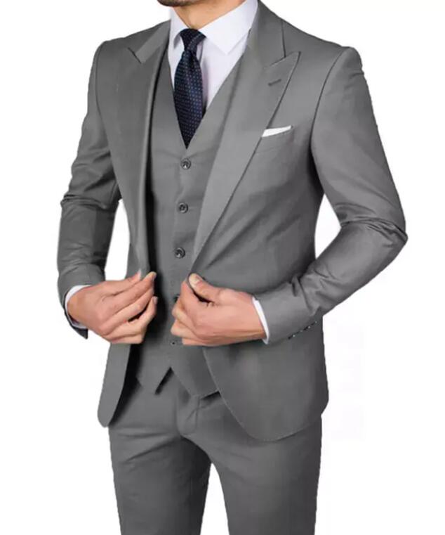 Slim Fit Charcoal Grey Wedding Suits for Men 3 Pieces Groomsmen Suit Wear CS925