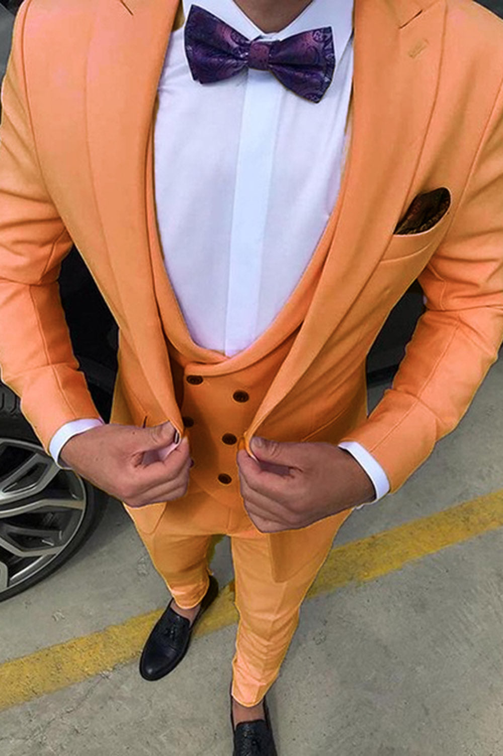Slim Fit Orange Men Suits for Prom/Party 3 Piece Custom Male Fashion Outfits CB3829