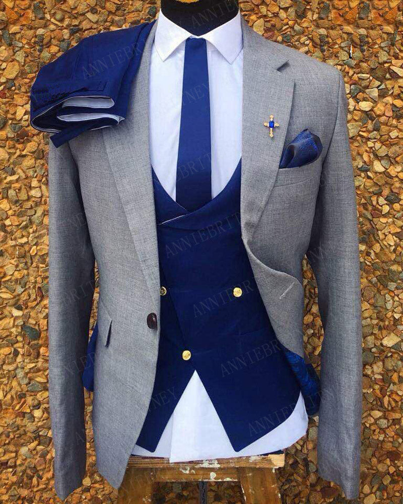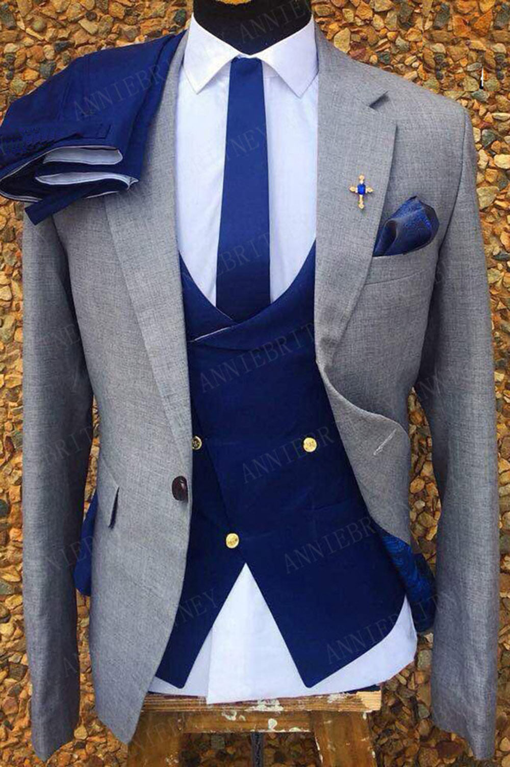 Stylish Slim Fit Gray and Royal Blue blazer Outfit for Men ,3 Pieces Prom Suits 2025 CB10430