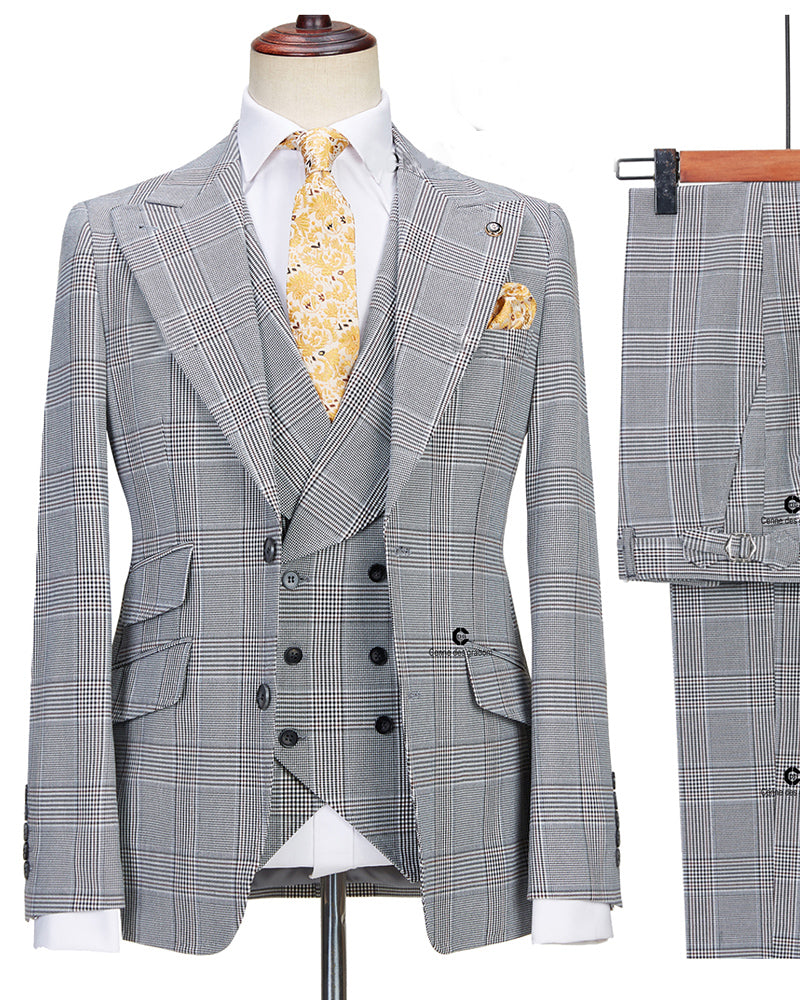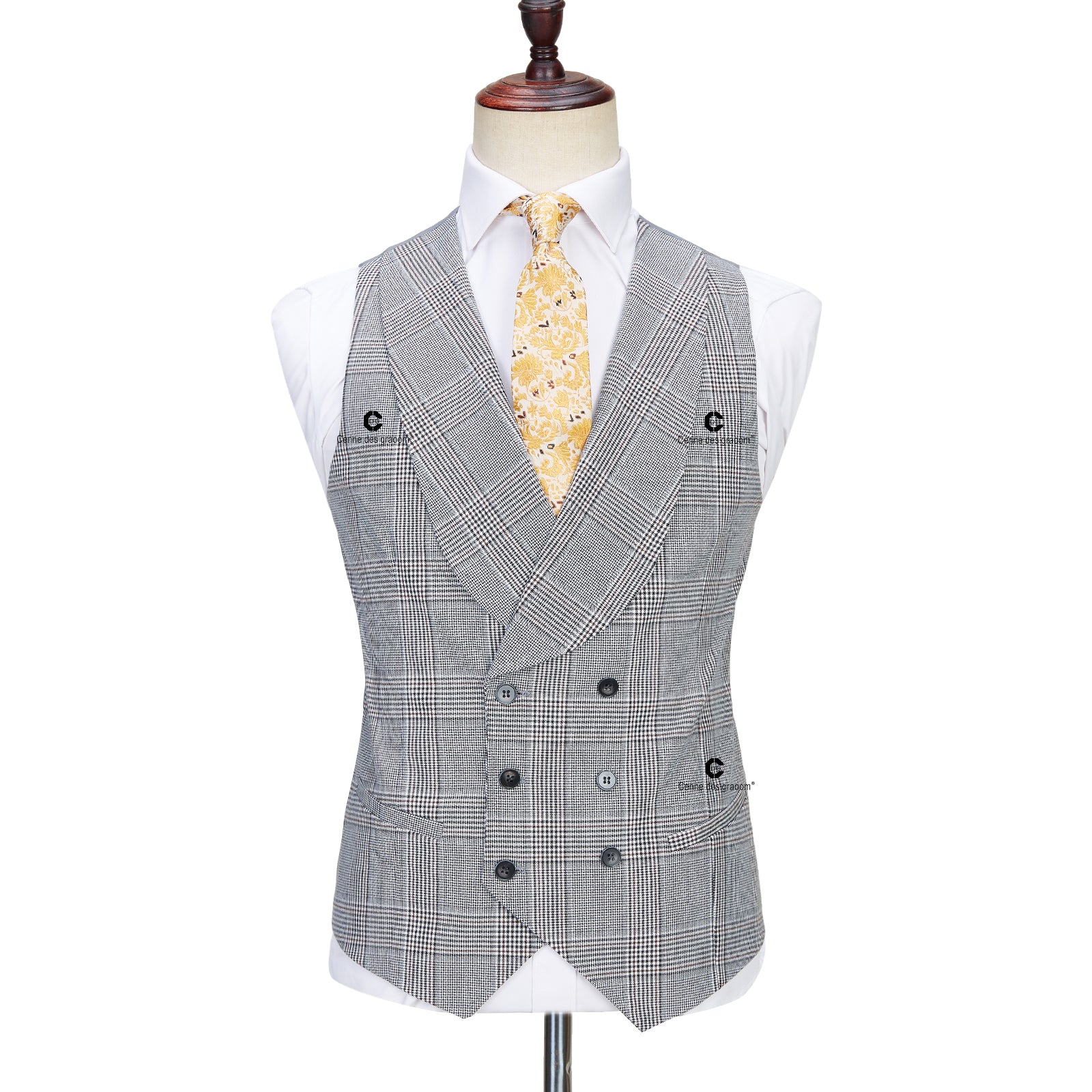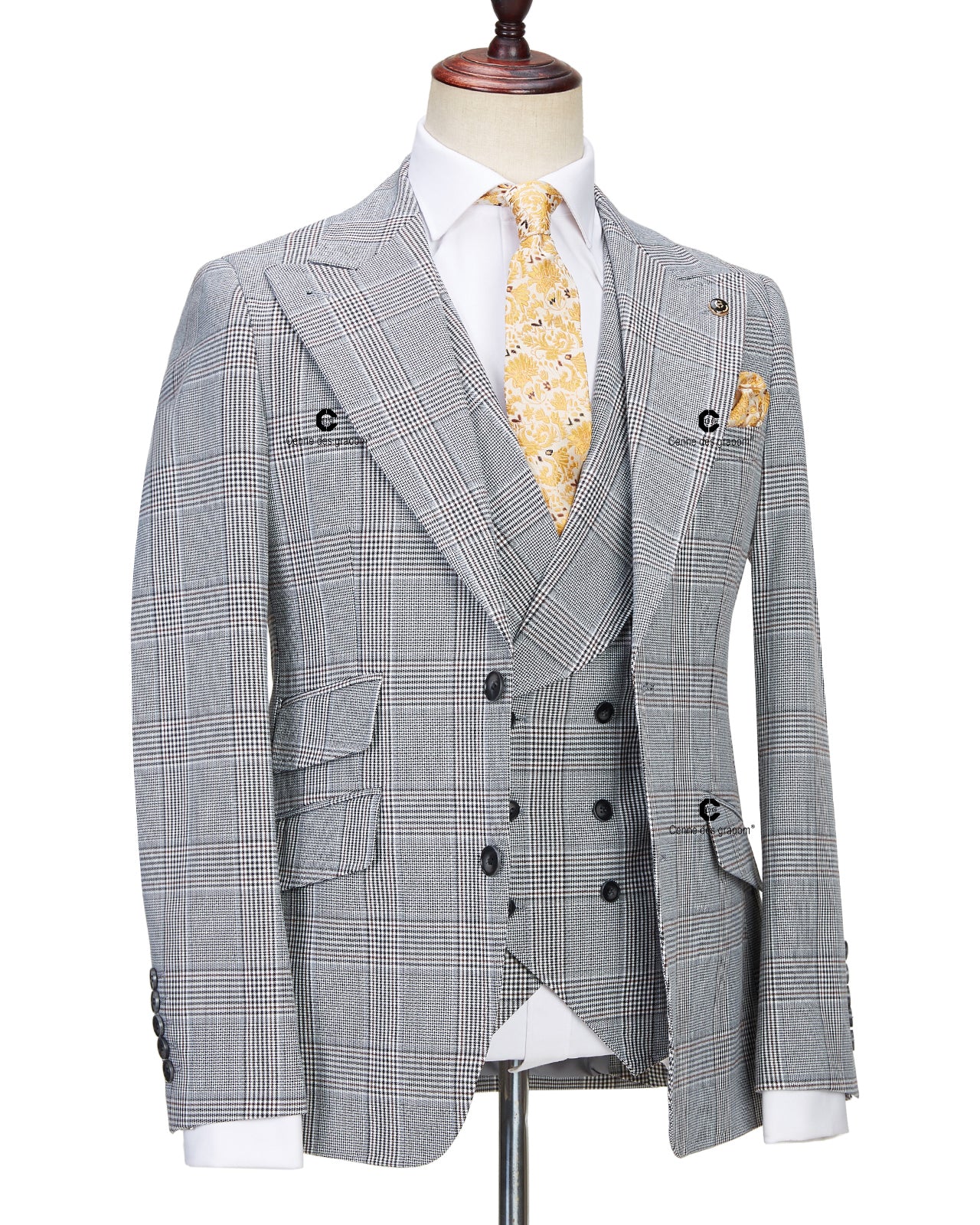 White/Black Tweed Houndstooth Mens 3 Piece Suits for Wedding/ Prom CB98514