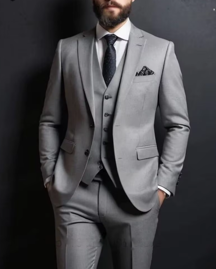 Classic Wedding Tuxedos Casual Solid Suits Slim Fit 3 Pieces Groomsmen Suit Male Formal Business Men Clothing(Jacket+Vest+Pants)CS1120