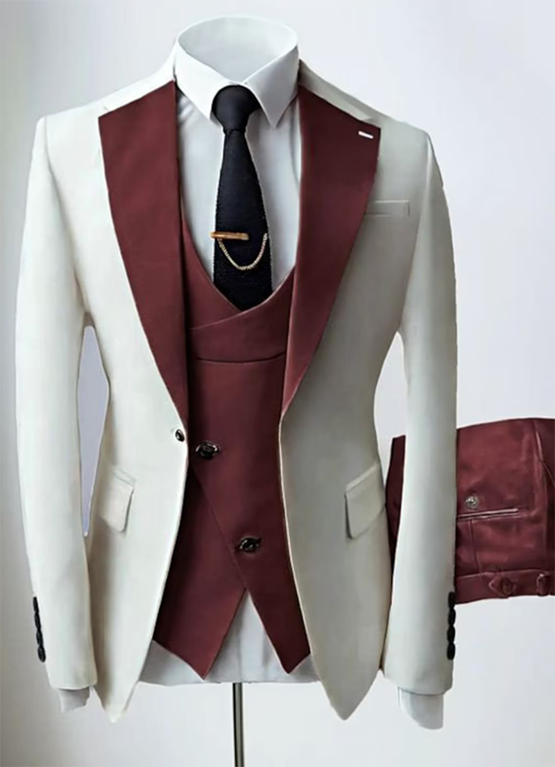 Ivory and Burgundy Wedding Suits Men Outfits 3 Pieces CS52261